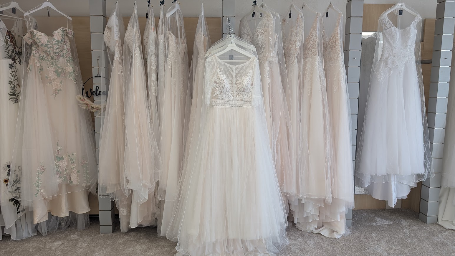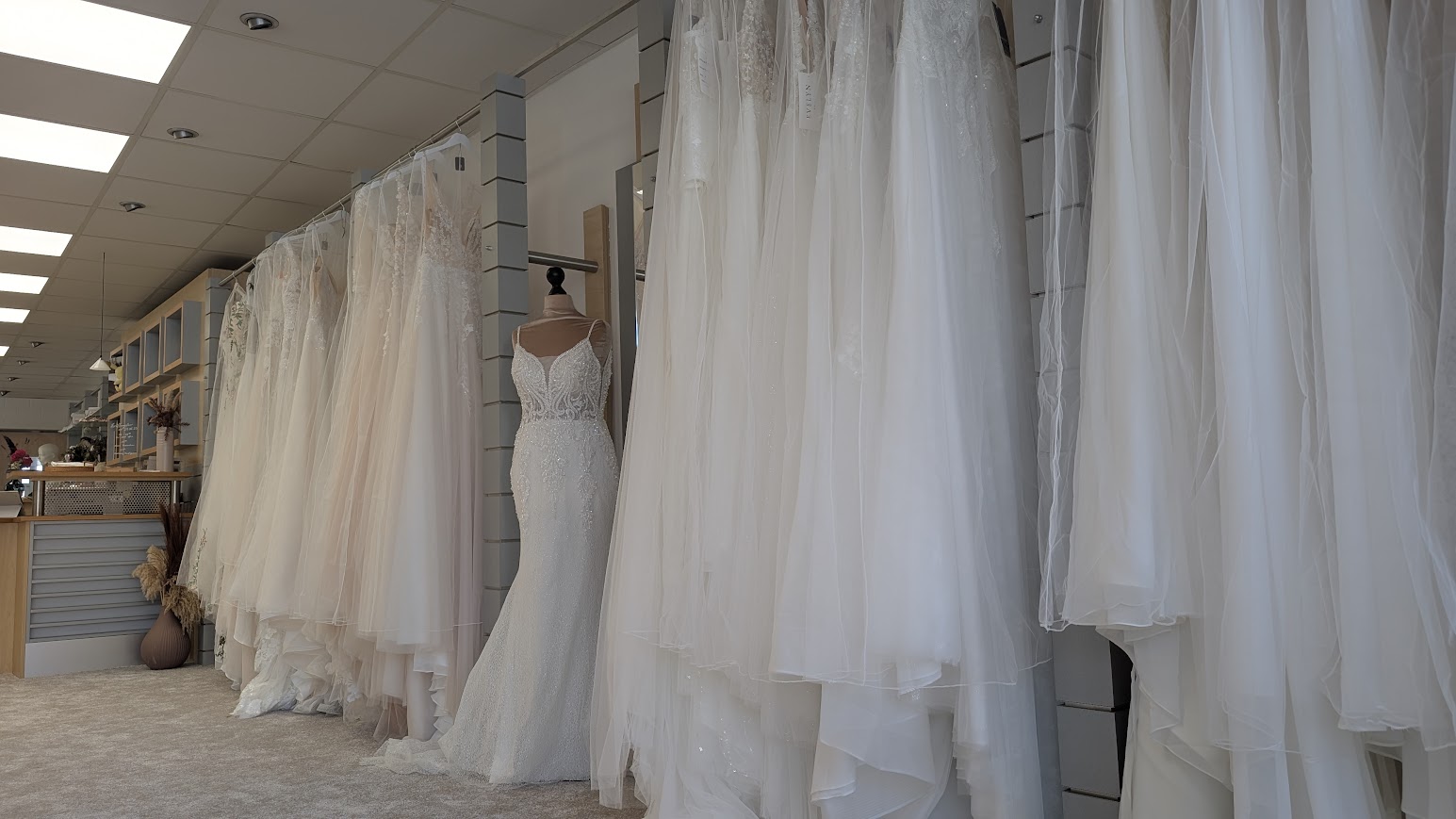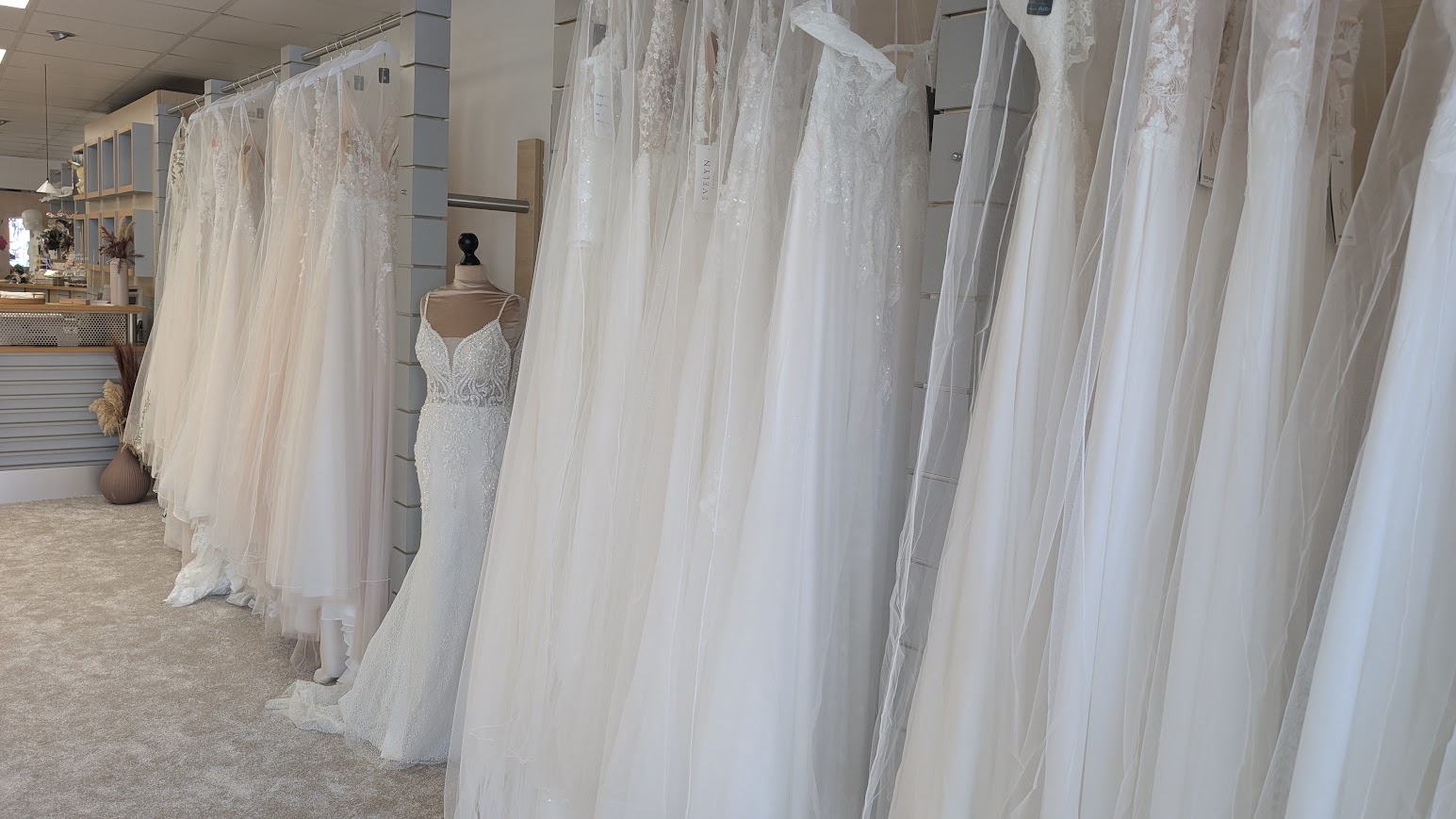 Im vorderen Teil findet ihr meine Brautkleider – ein sorgfältig ausgewähltes Sortiment von rund 100 Kleidern.