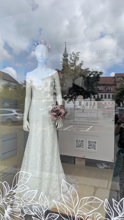 Manchmal schreibt das Leben die besten Geschichten selbst. Eigentlich war ich ja „nur“ auf der Suche nach einem größeren Studio oder einer Gewerbeeinheit. Doch wie so oft im Leben, wurde aus einer Not eine wunderbare Gelegenheit: Im Juli 2025 habe ich meinen eigenen Brautmodeladen eröffnet – „liebgewonnen“ am Markt.
