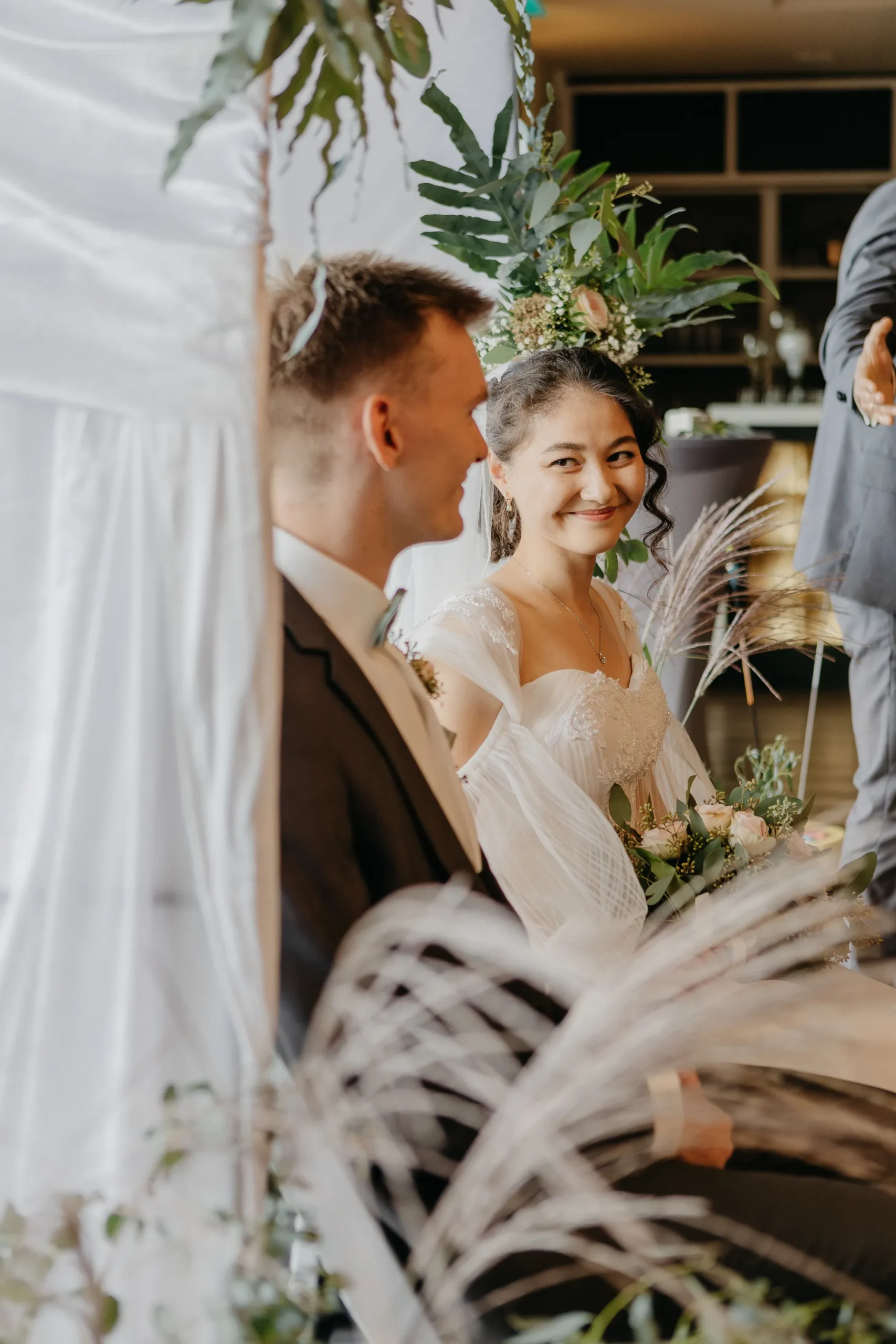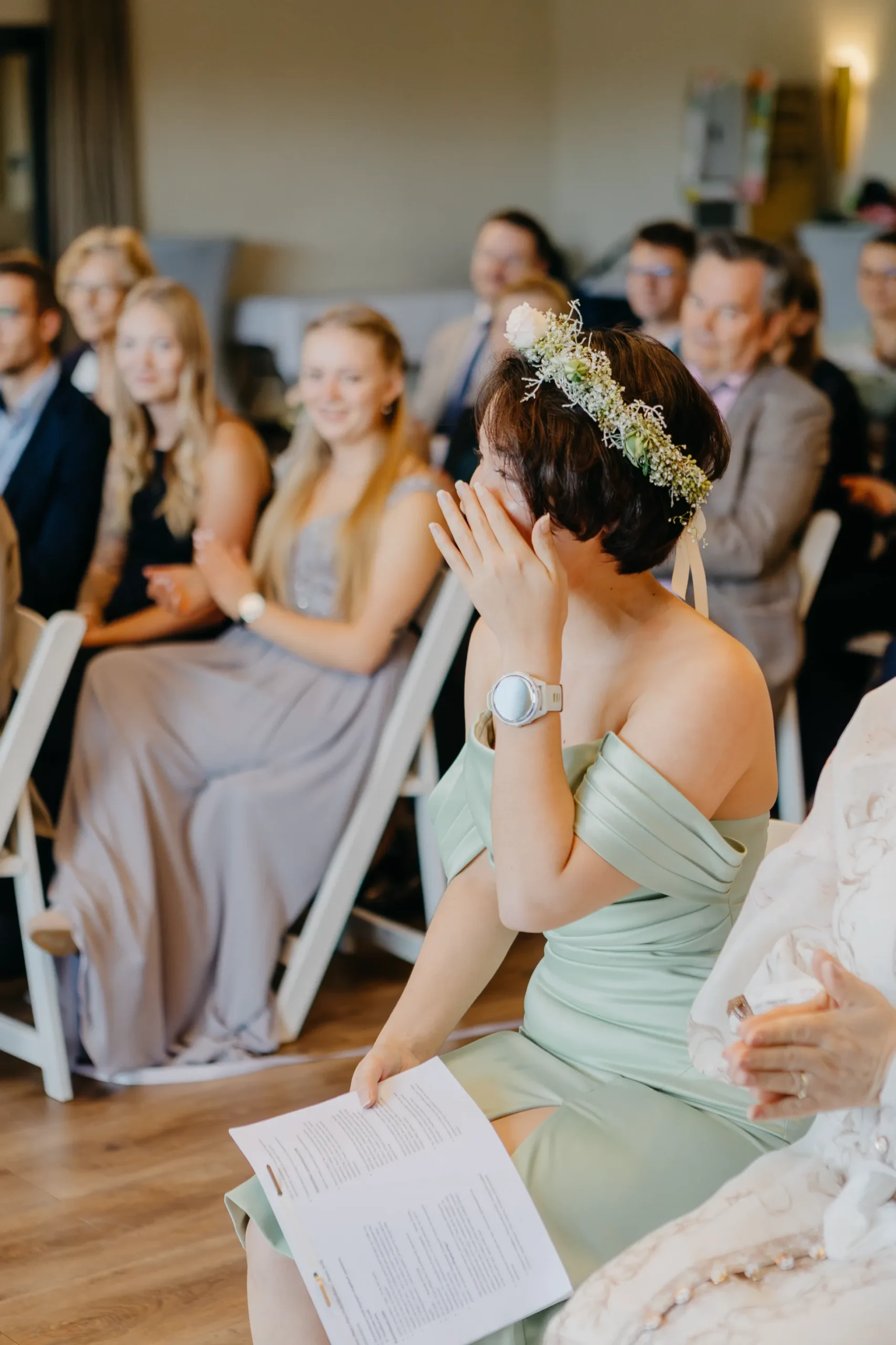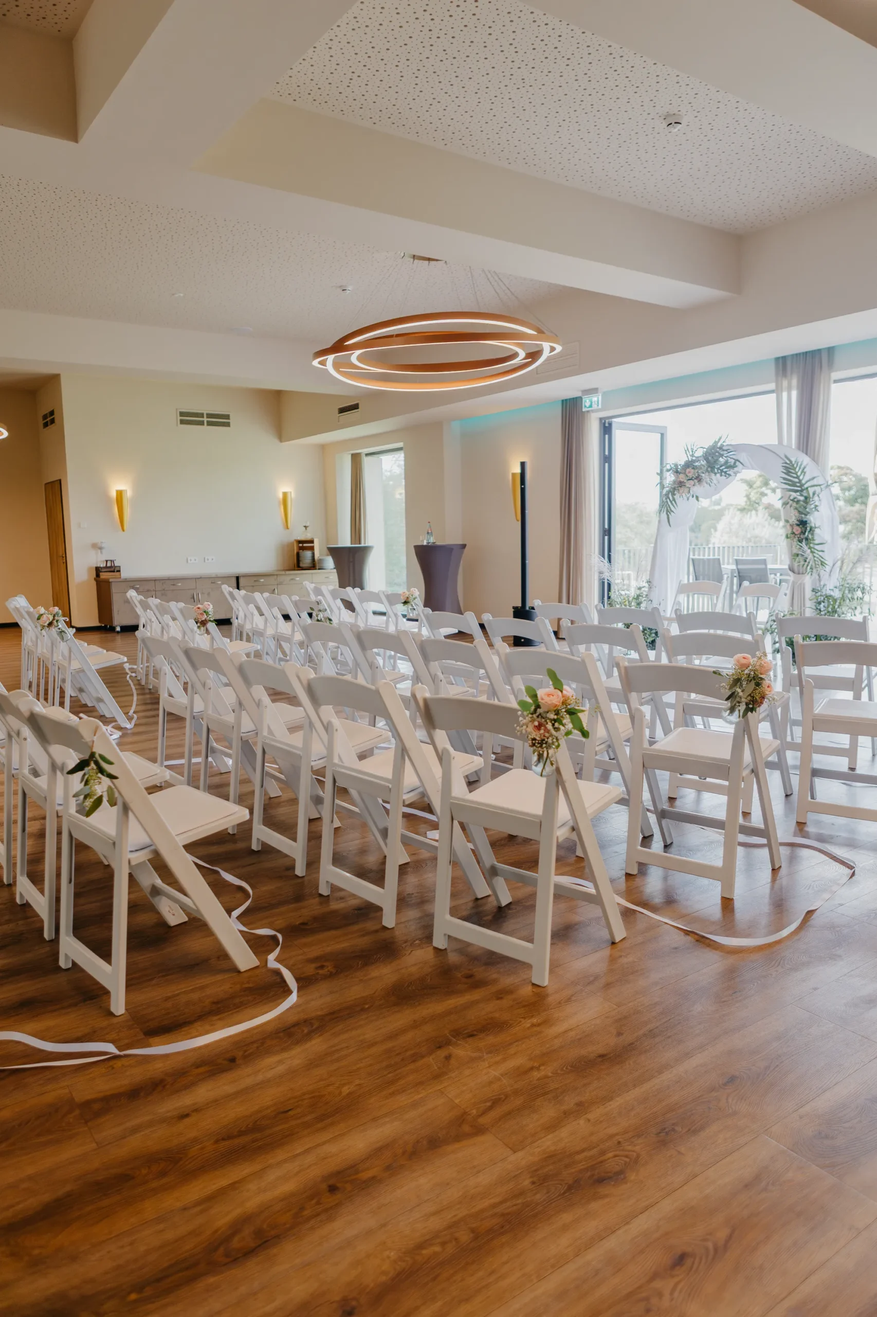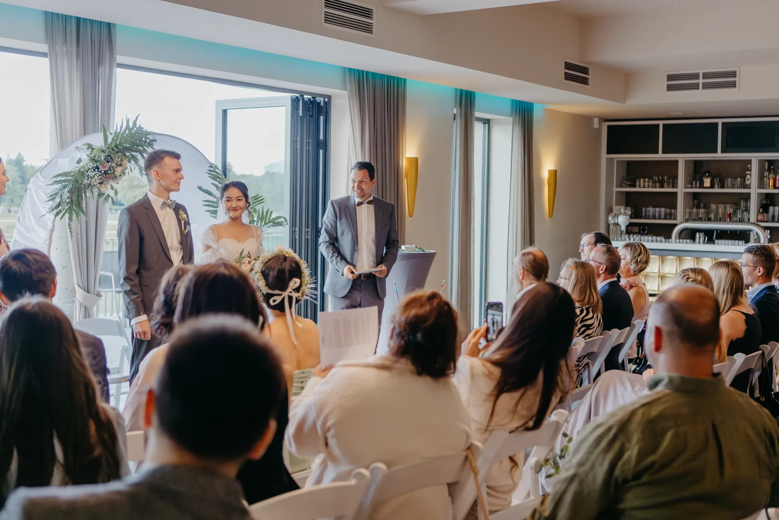 Die Trauung wurde nach innen verlegt, was im ersten Moment vielleicht wie ein Kompromiss wirkt. Tatsächlich war es genau das Gegenteil. Es wurde enger, ruhiger, persönlicher. Alle waren näher dran. Und genau das hat man gespürt.