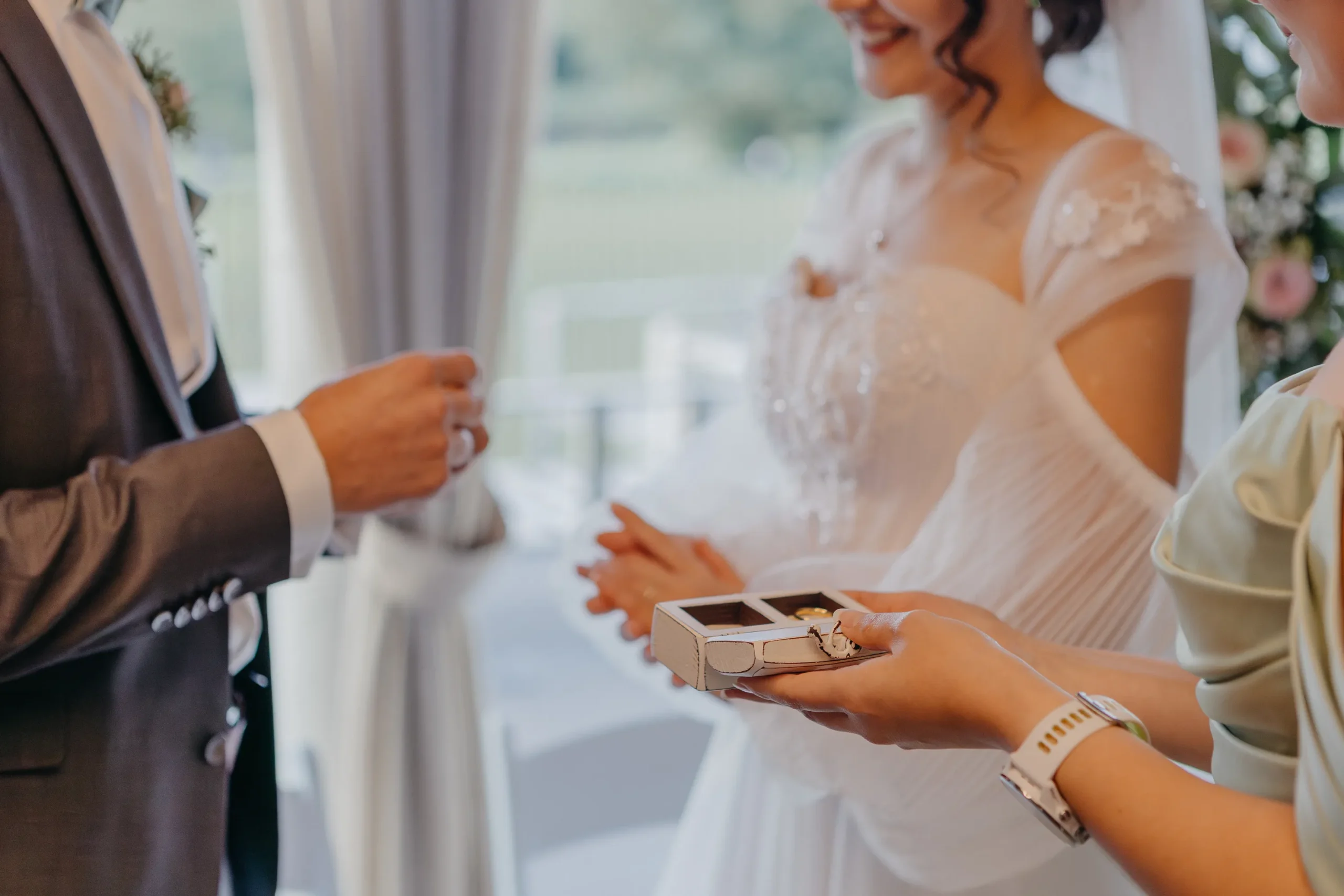 Die Zeremonie hatte viele schöne Momente, aber einer bleibt besonders hängen: das Ringritual. Die Ringe gingen durch alle Reihen, von Hand zu Hand. Jeder konnte einen Gedanken, einen Wunsch mitgeben. Kein großes Spektakel – eher leise. Aber genau deshalb so stark.