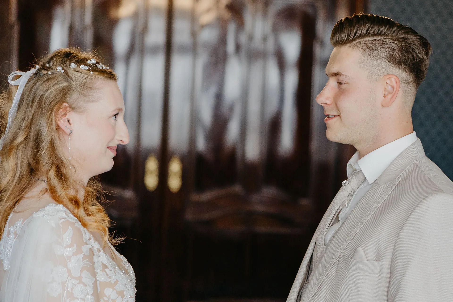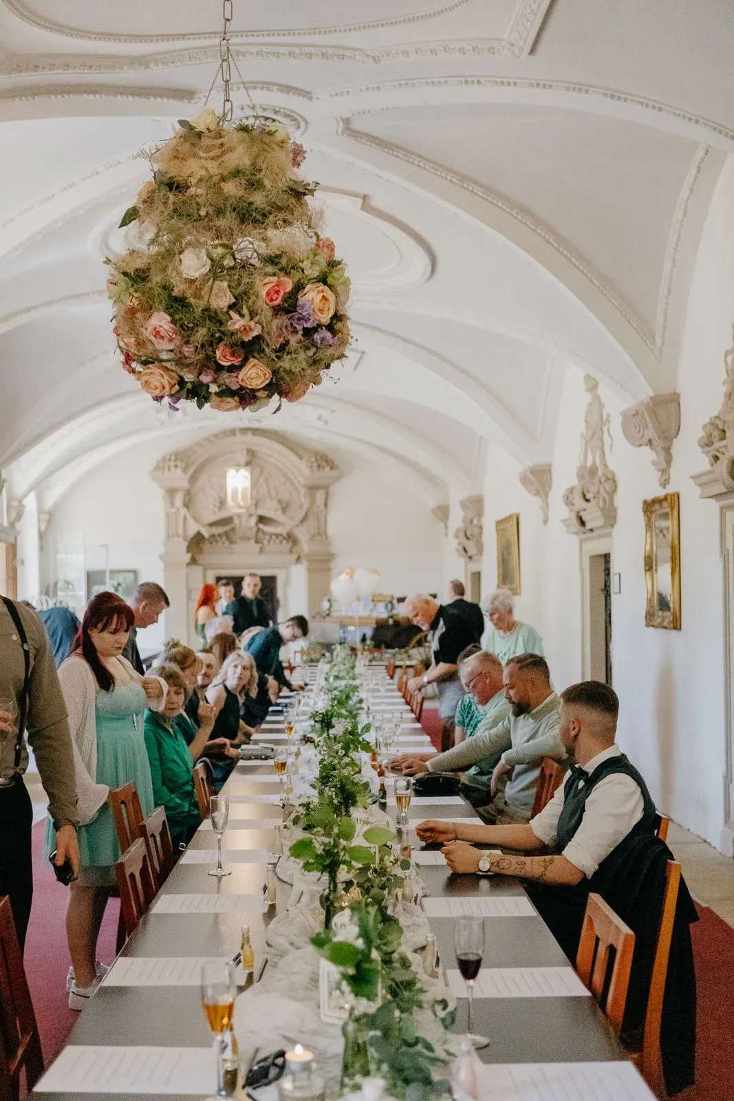 Lisa & David hatten die untere Etage des Schlosses exklusiv für sich und ihre Gäste gemietet. Mit viel Liebe zum Detail wurde dekoriert – Blumen, Kerzen, Lichterketten – alles passte perfekt zusammen. Die Stimmung war großartig, die Gesellschaft ausgelassen, und auf der Tanzfläche blieb kaum jemand still sitzen. Für mich als Fotografin war es ein Traum, diese pure Lebensfreude einzufangen. Ein ganz besonderer Moment