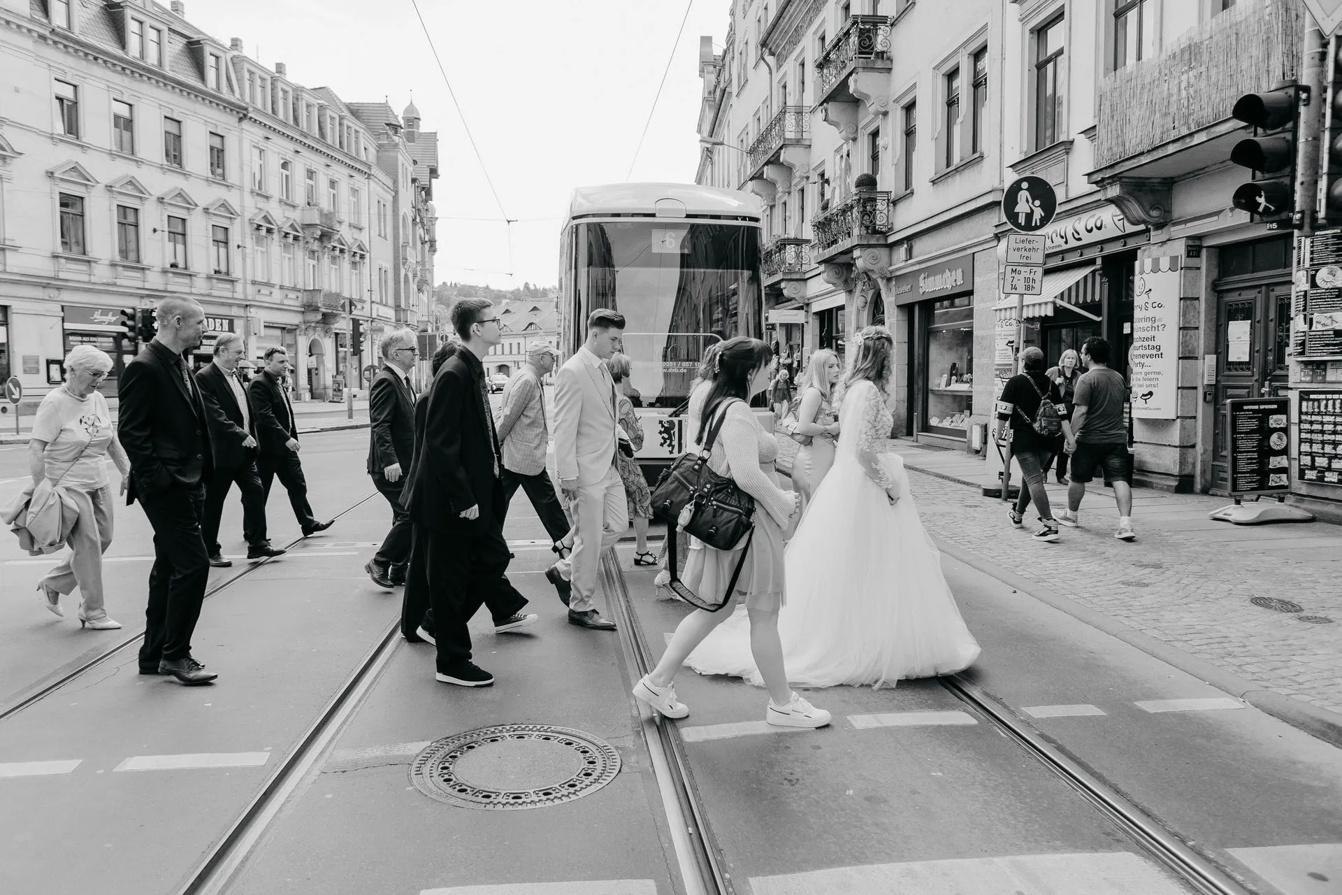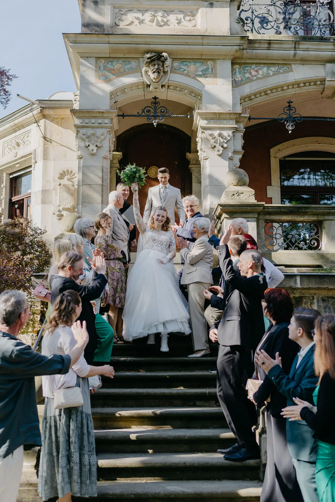An einem sonnigen Sommertag im Jahr 2025 war es soweit. Die Gäste versammelten sich auf der Goetheallee in Dresden, wo das Paar im kleinen Kreis standesamtlich heiratete. Die Sonne strahlte, die Stimmung war ausgelassen und das JA-Wort von Lisa & David kam von Herzen – begleitet von ein paar Freudentränen und ganz viel Lachen.