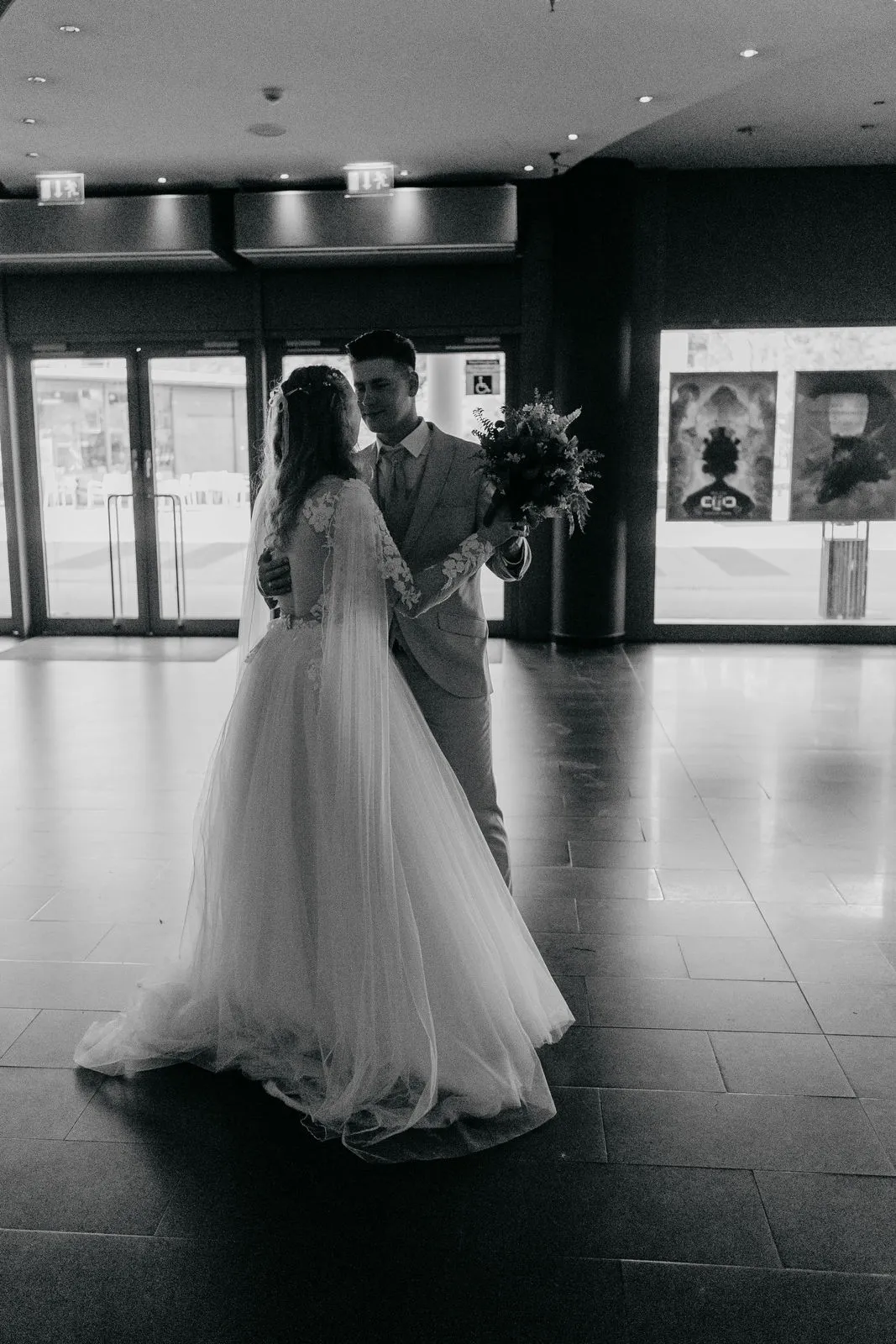 Danach ging es weiter – aber nicht direkt zur Feier, sondern erst einmal in die Schillergalerie in Dresden. Ein eher untypischer Ort für eine Hochzeitsgesellschaft, aber genau das machte es so charmant. Während die anderen Hochzeitsgäste vielleicht gerade ein Drei-Gänge-Menü planten, gönnten wir uns einen Kaffee und etwas zu trinken. Es war ein witziger, entspannter Moment – und eine super Gelegenheit, um kurz durchzuatmen und die Zeit bis zum nächsten Programmpunkt zu überbrücken.